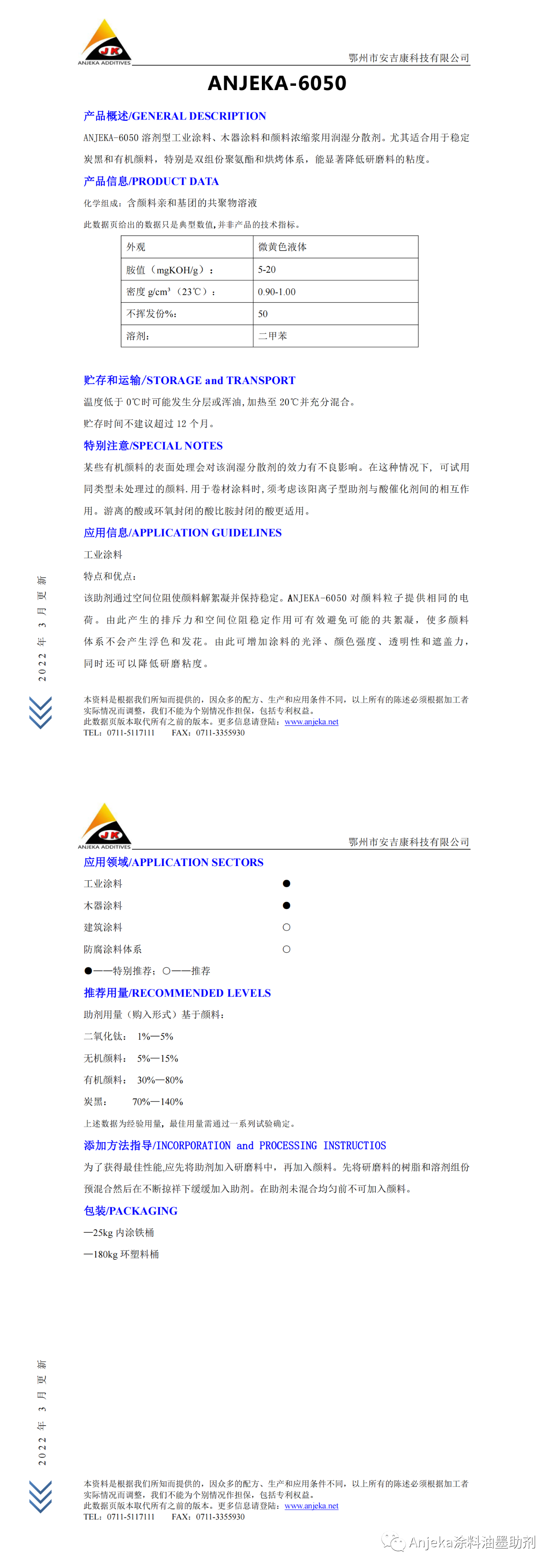 6050溶劑型工業(yè)涂料、木器涂料和顏料濃縮漿用潤濕分散劑。尤其適合用于穩(wěn)定炭黑和有機顏料,